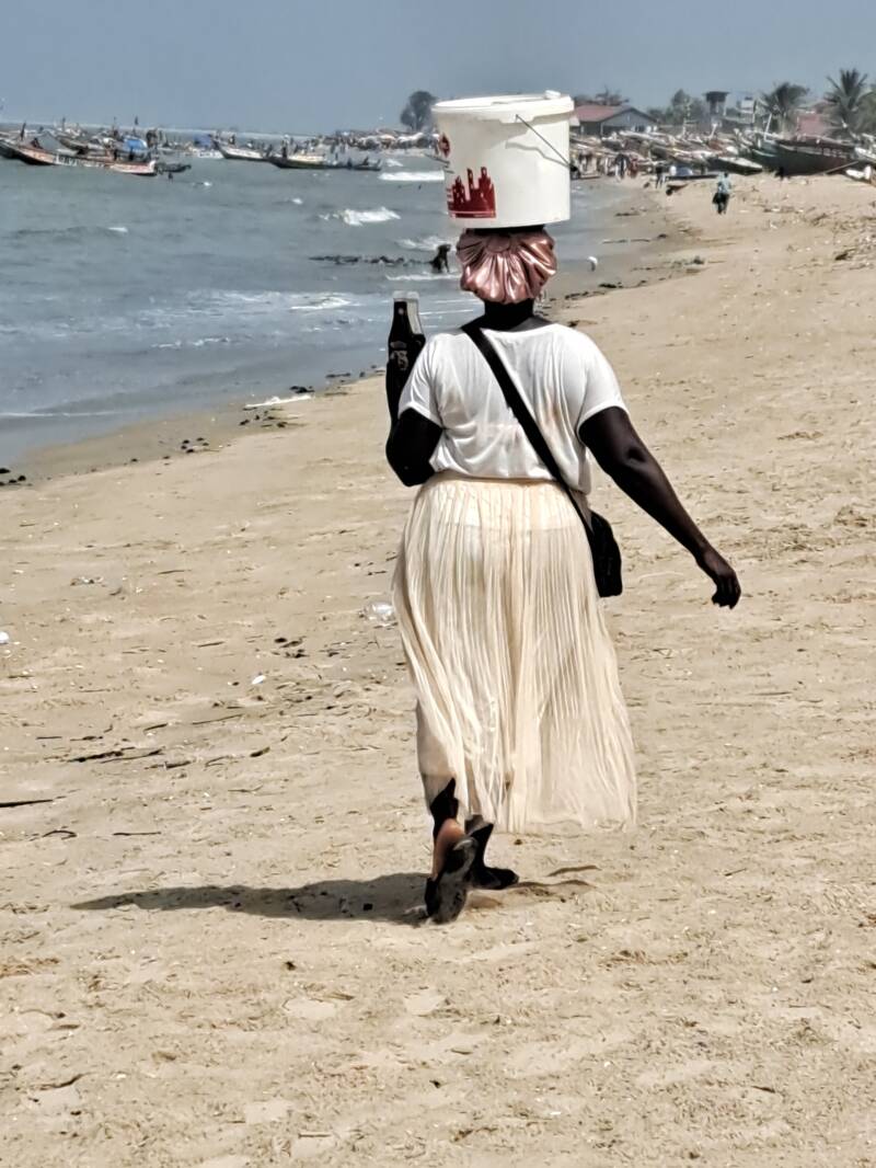 Ook op het strand komt er vanalles voorbij wat ze graag bij je onder de aandacht brengen. Als je daar eens met aandacht naar kijkt dan krijg je respect voor de vrouwen. Zwanger of met baby op de rug én een zware grote schaal op het hoofd struinen ze in de bloedhete zon de stranden af op zoek naar wat business zodat ze de monden thuis weer kunnen voeden. En geloof me, het is geen vetpot want ze zijn nooit de enige die met bananen en pinda's loopt en meer en meer hotels " beschermen" hun gasten en mag de verkoper niet eens meer bij hun langs komen lopen tenzij ze geroepen worden.